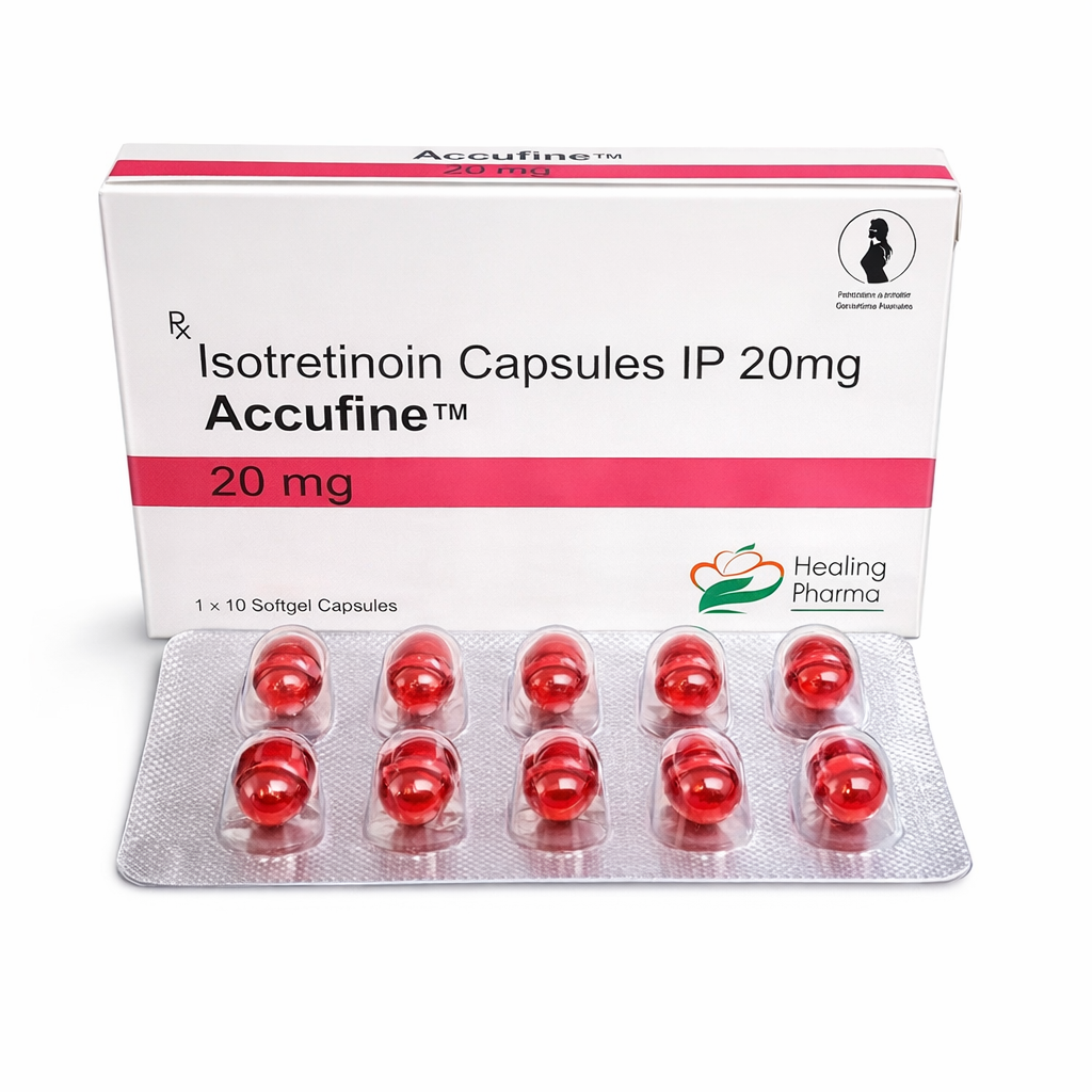 Accufine 20mg Capsule contains Isotretinoin, a retinoid medication derived from Vitamin A. It is widely prescribed for the treatment of severe acne that does not respond to conventional therapies such as antibiotics or topical treatments.