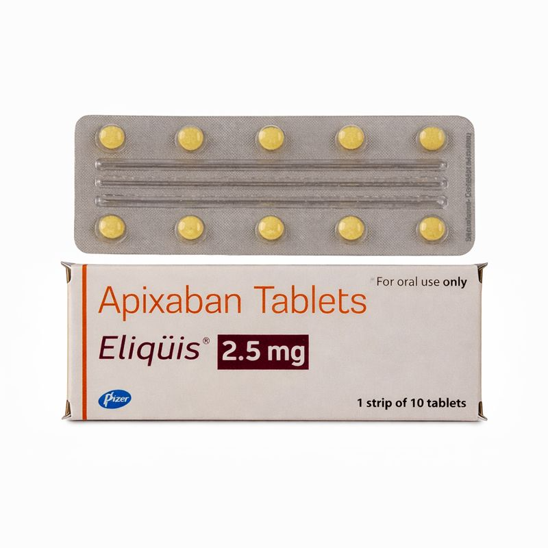 ELIQUIS Tablet contains Apixaban 2.5 mg, an oral anticoagulant belonging to the class of direct factor Xa inhibitors. It is used in physician-supervised medical settings to help reduce the risk of blood clot formation in patients requiring anticoagulation therapy at a lower dose strength.