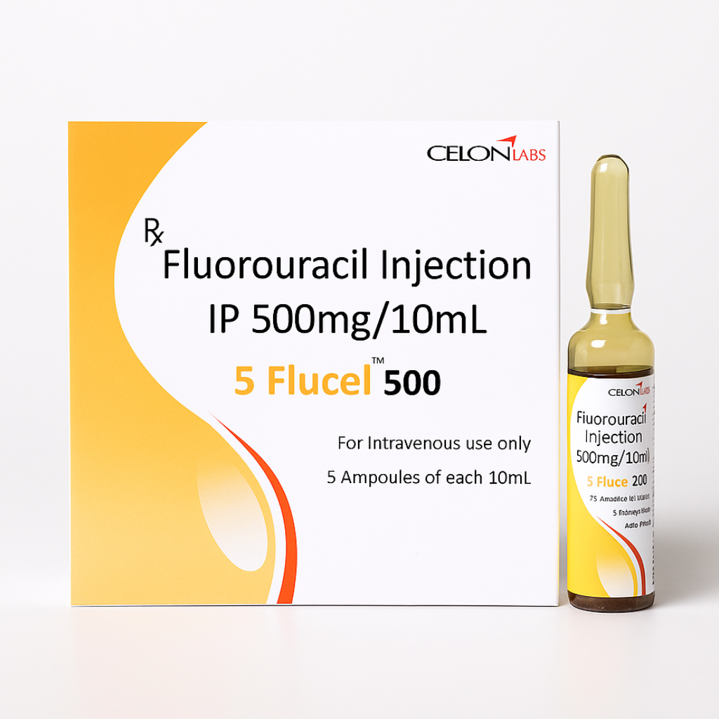 5 Flucel 500mg Injection contains the active ingredient as Fluorouracil. It belongs to a class of drugs called antimetabolites, which interfere with the genetic material (DNA and RNA) synthesis of rapidly dividing cancer cells, leading to their death. It is commonly used to treat breast, colorectal, stomach, esophagus, and pancreatic cancers. It can be administered in different ways, including through injection or as a cream.