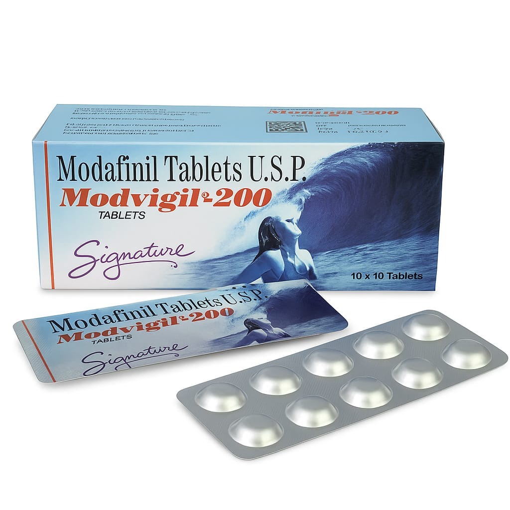 Modafinil 200mg & 100mg Tablets is a medicine used in the treatment of excessive daytime sleepiness (narcolepsy). It promotes wakefulness and helps you to stay awake. Thereby, reducing the tendency to fall asleep during the day and restoring the normal sleep cycle.