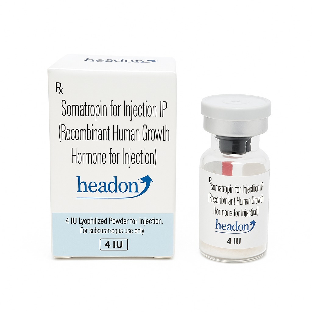 Human Growth Hormone, Muscle Gain, Bodybuilding, Anti-Aging, Pharma Supplier, Exporter, Growth failure due to growth hormone deficiency Marketer Sun Pharmaceutical Industries Ltd SALT COMPOSITION Somatropin (4IU) Salt Synonyms Recombinant human growth hormone @ERNESTPHARMACEUTICALPVTLTD For bulk quotations, availability, and orders, please contact us: πŸ“§ Email: exports@ernestpharmaceuticals.com 🌐 www.ernestpharmaceuticals.com| www.ernestimpex.com Amit Rai: WhatsApp link https://wa.me/message/M6GESWXSIOZMD1 πŸ“² WhatsApp: +91 94054 76170 Product introduction Headon Injection is a medicine that is identical to the main form of the naturally occurring human growth hormone. It is used to treat children with growth failure due to inadequate secretion of endogenous growth hormone (GH). It is used to treat short stature in adults also. Headon Injection is given as an injection into the skin under the supervision of a doctor. Your doctor or nurse will help you to learn the exact method of self-administration. You should receive appropriate training and instructions from the physician before using it. The dose and how often you take it depends on what you are taking it for. You should take this medicine for as long as it is prescribed for you. The most common side effects of this medicine include injection site reaction, headache, and rash. If these bother you or appear serious, let your doctor know. There may be ways of reducing or preventing them. Before taking this medicine, tell your doctor if you have ever had diabetes, or have a thyroid disorder. Your doctor should also know about all other medicines you are taking as many of these may make this medicine less effective or change the way it works. Tell your doctor if you are pregnant, planning pregnancy or breastfeeding. You may be asked for regular monitoring of blood sugar levels, kidney function and level of growth hormone before and during the treatment. Uses of Headon Powder for Injection Pituitary dwarfism Growth failure due to growth hormone deficiency Benefits of Headon Powder for Injection In Growth failure due to growth hormone deficiency Headon Injection acts as a replacement for growth hormone, and helps restore normal growth and development of bones and muscles in individuals suffering from growth hormone deficiency. It helps children grow taller and also enables muscle growth in both children as well as adults. However, it should be used only if prescribed by a doctor and should not be self-administered. Side effects of Headon Powder for Injection Most side effects do not require any medical attention and disappear as your body adjusts to the medicine. Consult your doctor if they persist or if you’re worried about them