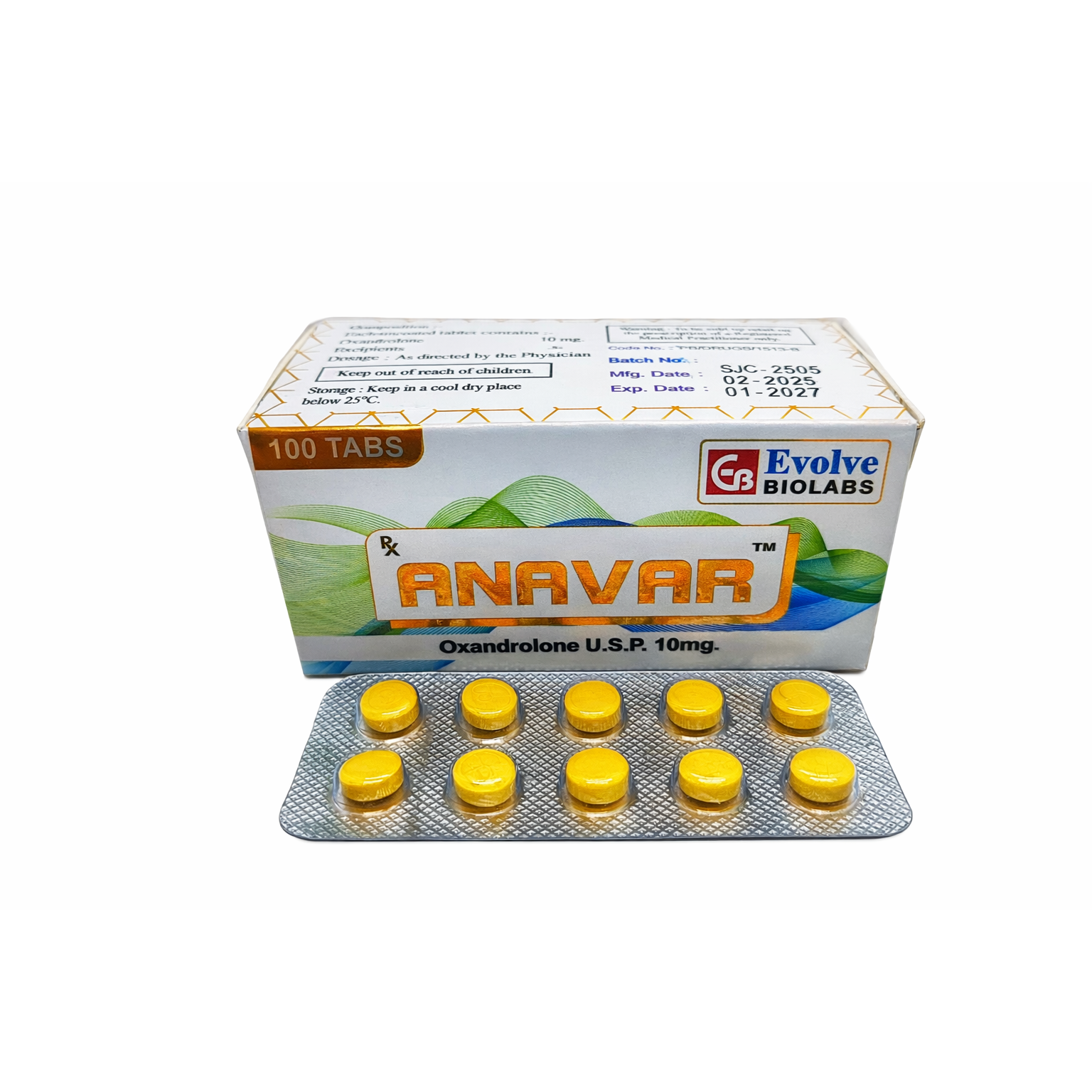 Anavar 10MG Tablet contains Oxandrolone 10 mg, an anabolic steroid used in specific medical conditions such as weight gain after surgery, chronic infections, trauma recovery, and certain catabolic disorders under medical supervision.