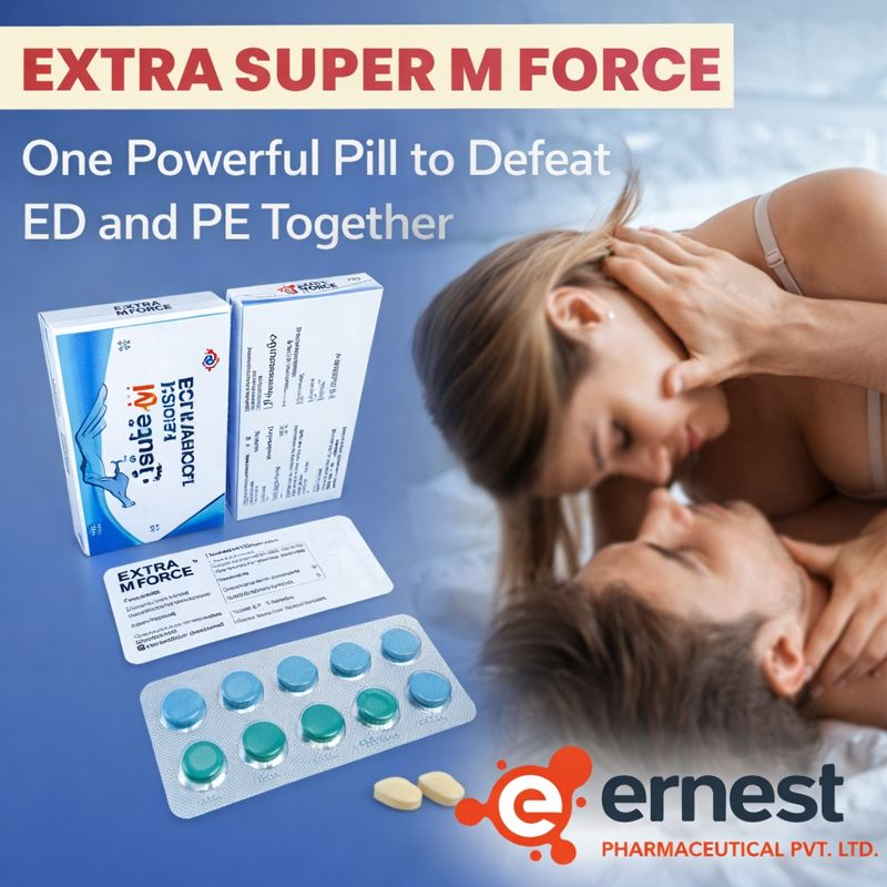 The main purpose of Extra Super M Force is to assist men with erectile dysfunction and premature ejaculation through performance enhancement and improving their self-confidence. The single tablet combines Sildenafil 100mg and Dapoxetine 100mg as a therapeutic solution for performing during both erectile dysfunction and premature ejaculation. The prudent step always involves consulting with healthcare providers to verify your medication matches your individual needs.
