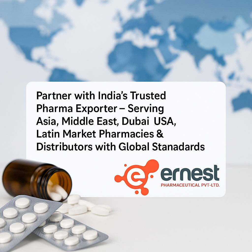 Generic medicine exporter, generic drugs supplier India, global pharmaceutical exporter, generic medicine company, international pharma supplier, generic medicines for export, Ernest Pharmaceutical Pvt Ltd @ERNESTPHARMACEUTICALPVTLTD For bulk quotations, availability, and orders, please contact us: πŸ“§ Email: exports@ernestpharmaceuticals.com 🌐 www.ernestpharmaceuticals.com| www.ernestimpex.com Amit Rai: WhatsApp link https://wa.me/message/M6GESWXSIOZMD1 πŸ“² WhatsApp: β€ͺβ€ͺβ€ͺ+91 94054 76170‬‬‬ Ernest Pharmaceutical Pvt Ltd is a leading global exporter and supplier of high-quality generic medicines. With over 15 years of experience, we supply to more than 100 countries across the world, offering affordable and effective pharmaceutical solutions for hospitals, distributors, and importers. Our product range includes tablets, capsules, injections, and wellness products covering multiple therapeutic segments. Known for reliability, timely delivery, and consistent quality, we help global partners access top-grade Indian generic pharmaceuticals with complete export documentation support.