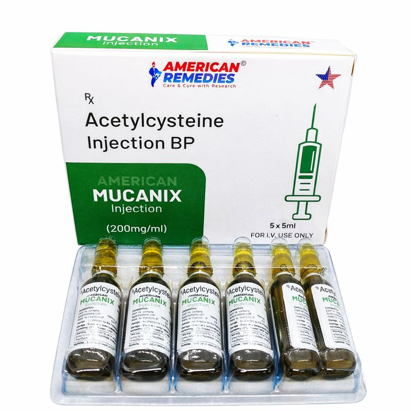 Mucanix 200 mg/ml Injection contains Acetylcysteine, a well-established mucolytic and antidote agent widely used in critical care, emergency medicine, and respiratory therapy. It is formulated as a sterile injectable solution for intravenous administration under medical supervision.