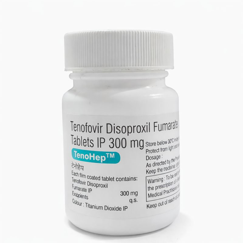 TenoHep 300 mg Tablet contains Tenofovir Disoproxil Fumarate (TDF) 300 mg, a well-established antiviral medicine used in the management of HIV-1 infection and chronic hepatitis B (HBV). It belongs to the class of nucleotide reverse transcriptase inhibitors (NRTIs) and is prescribed as part of combination therapy under medical supervision.